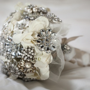 Sofisticados Para as mais sofisticadas, uma opção é incluir joias no buquê. A peça pode usar as joias apenas como complemento, misturando-as entre outras flores ou então optar por um buquê todinho de pedrarias.Foto: Thinkstock
